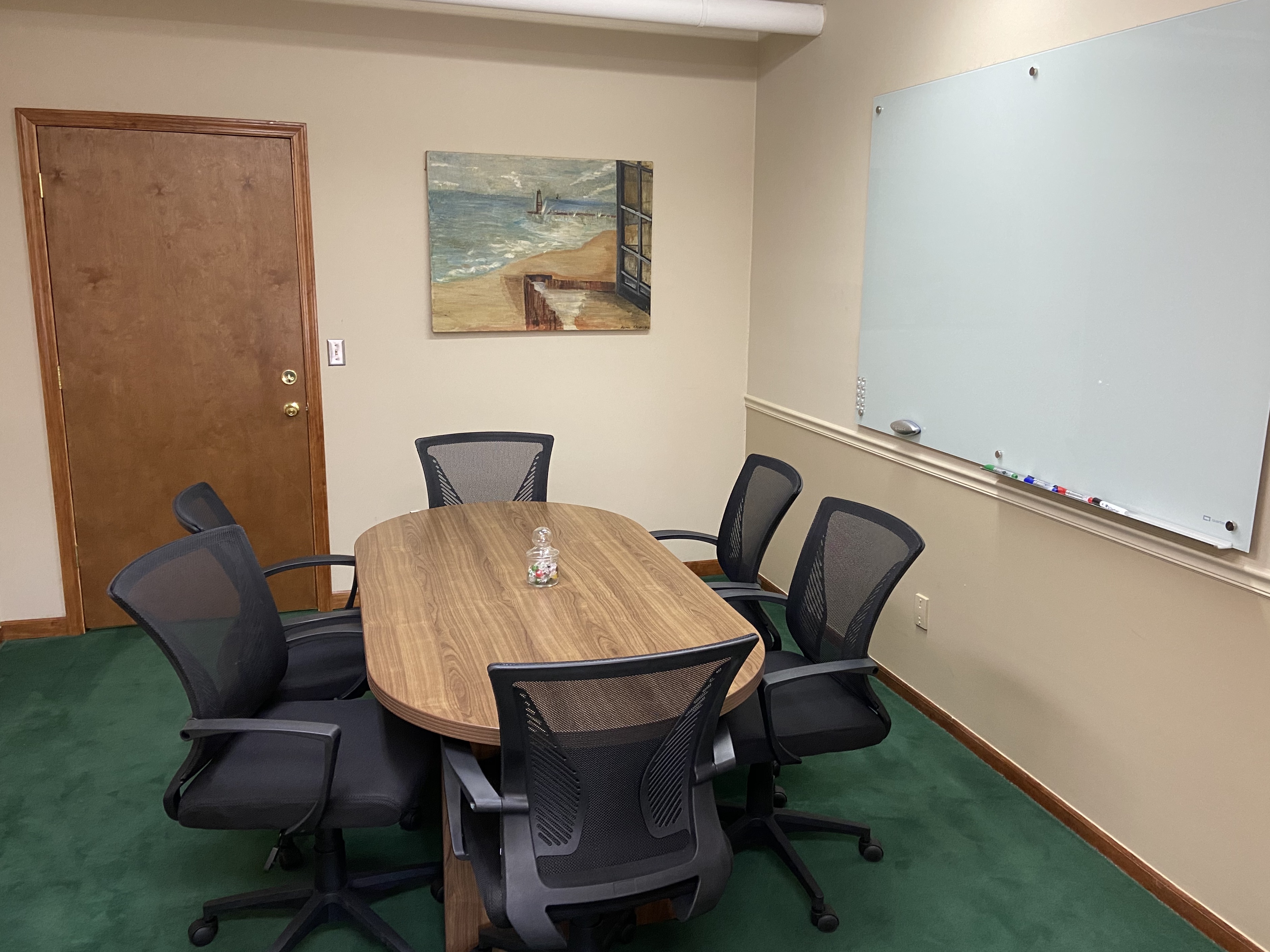 - Spacious room with large conference table (seats up to 6).